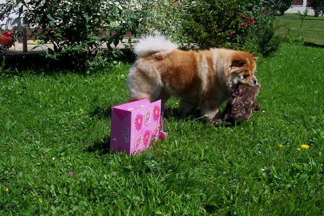 Während ich mit einem der Geschenke spiele ...